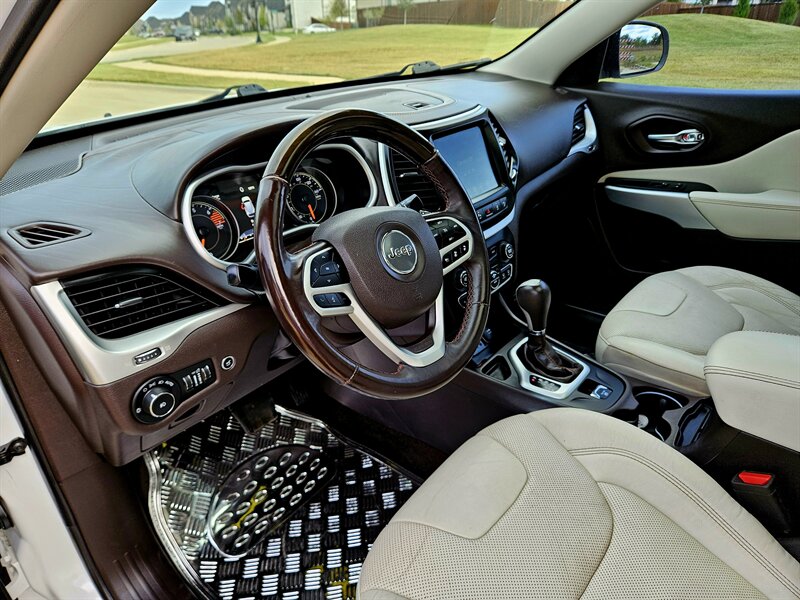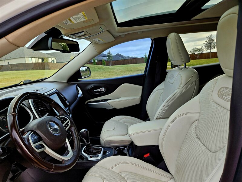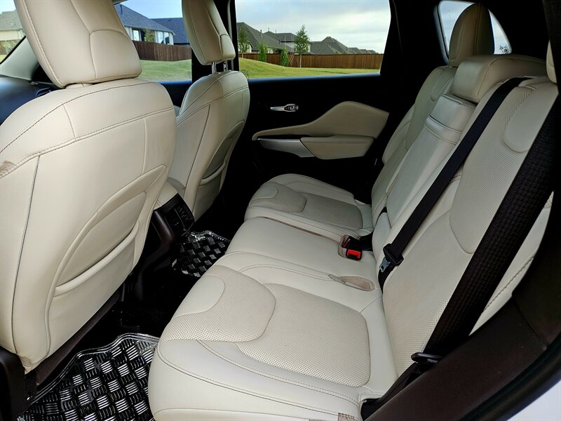 Step inside to discover a beautifully appointed Black interior that radiates comfort and style. The Cherokee Overland is packed with factory default features to enhance your driving experience. Enjoy the luxury of leather-trimmed seats with heated front and rear options, perfect for those chilly mornings. The spacious cabin is equipped with a premium sound system, ensuring your favorite tunes sound incredible on every journey.